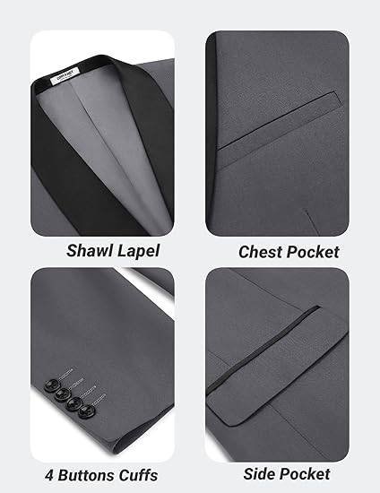COOFANDY men’s tuxedo jacket offers a sleek, slim-fit design for a modern look.
