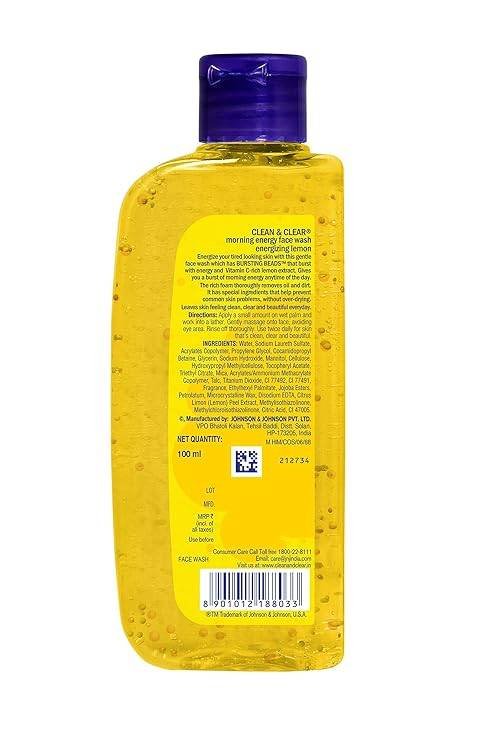 Clean & Clear Morning Energy Lemon Face Wash (100 ml) is a refreshing daily cleanser infused with cooling menthol and zesty lemon extracts to energize and purify your skin. It features soft bursting beads that gently remove dirt, oil and dead skin cells while lifting away impurities.