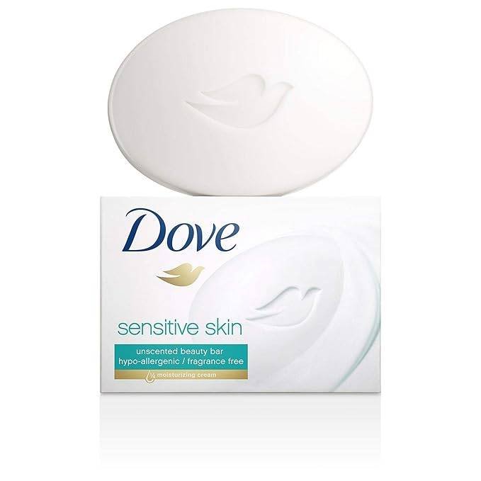**• Dove Sensitive Bar Soap is a hypoallergenic, fragrance‑free beauty bar designed for gentle cleansing of face, body, and hands.