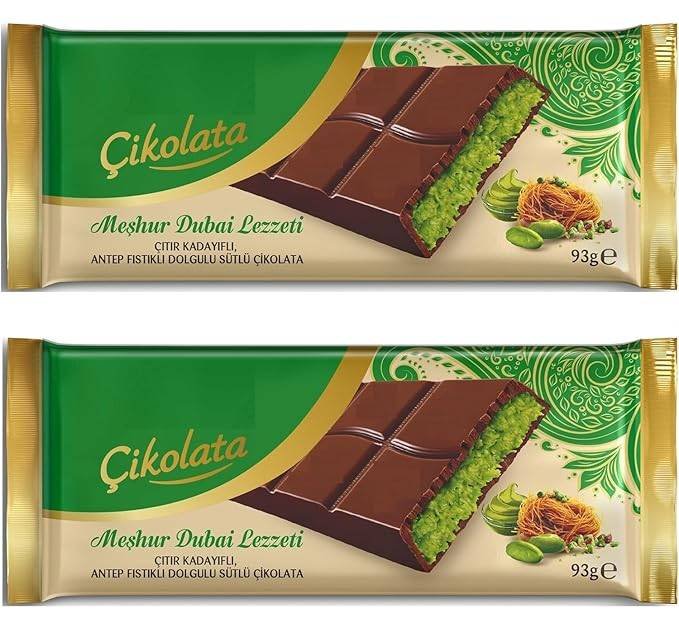 Dubai Chocolate Milk Chocolate with Pistachio offers a rich and creamy chocolate experience with a nutty pistachio crunch.