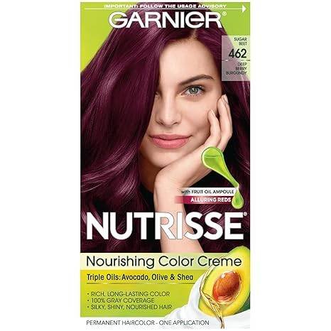 Garnier Hair Color Nutrisse Nourishing Creme, 462 Dark Berry Burgundy (Sugar Beet) Red Permanent Hair Dye — perfect for a website listing: