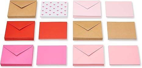 Cards and envelopes come in shades of red, pink, white, medium pink, dark pink and kraft for a charming mixed look.
