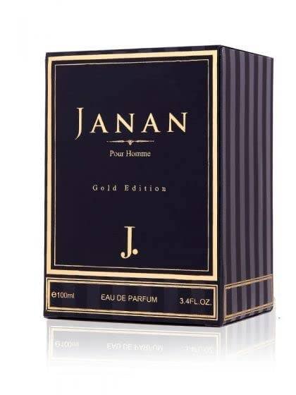 J. Janan Gold for Men EDP — 100 ML (3.4 oz) is a masculine Eau de Parfum known for its fruity-sweet, leather and woody smoky profile.