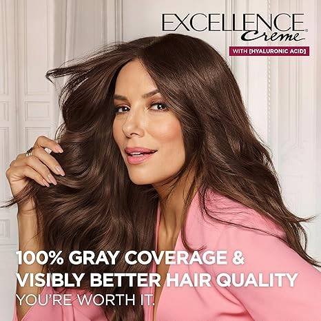 L’Oréal Paris Excellence Crème Permanent Hair Dye, Triple Care Hair Color with Pro‑Keratine Complex for 100% Gray Hair Coverage, 4A Dark Ash Brown: