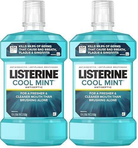 Listerine Cool Mint Antiseptic Mouthwash kills 99% of germs that cause bad breath and plaque.