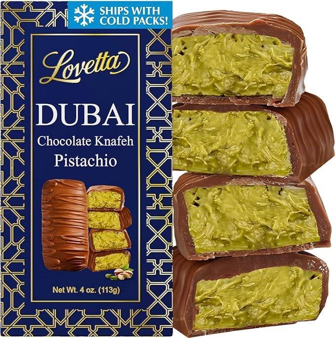 Combines smooth, creamy chocolate with the nutty crunch of pistachio and crispy kataifi.