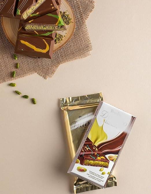 Luxury Dubai Chocolate Bar Pistachio is a premium 200g gourmet treat that combines smooth chocolate with crunchy kunafeh and rich pistachio.