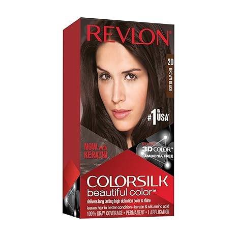 • Revlon ColorSilk Hair Color 20 Brown Black is a permanent at‑home hair dye that gives a rich blend of deep brown with black tones.