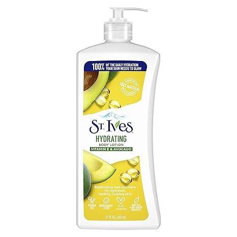 St. Ives Hydrating Hand & Body Lotion deeply moisturizes dry skin.